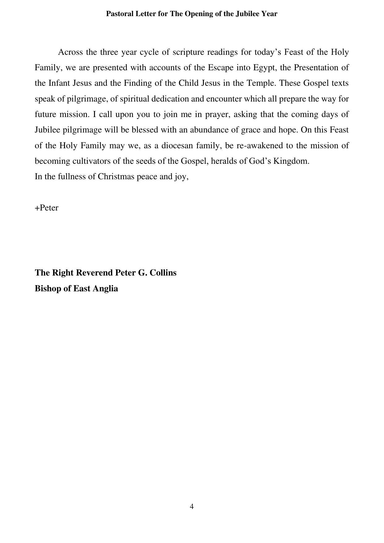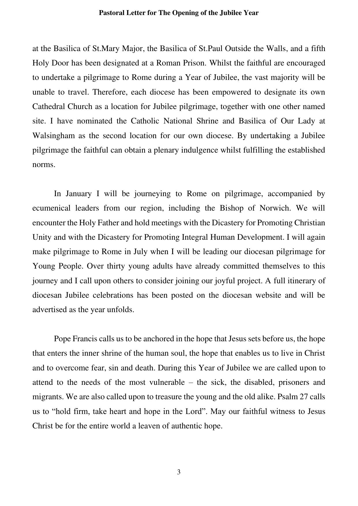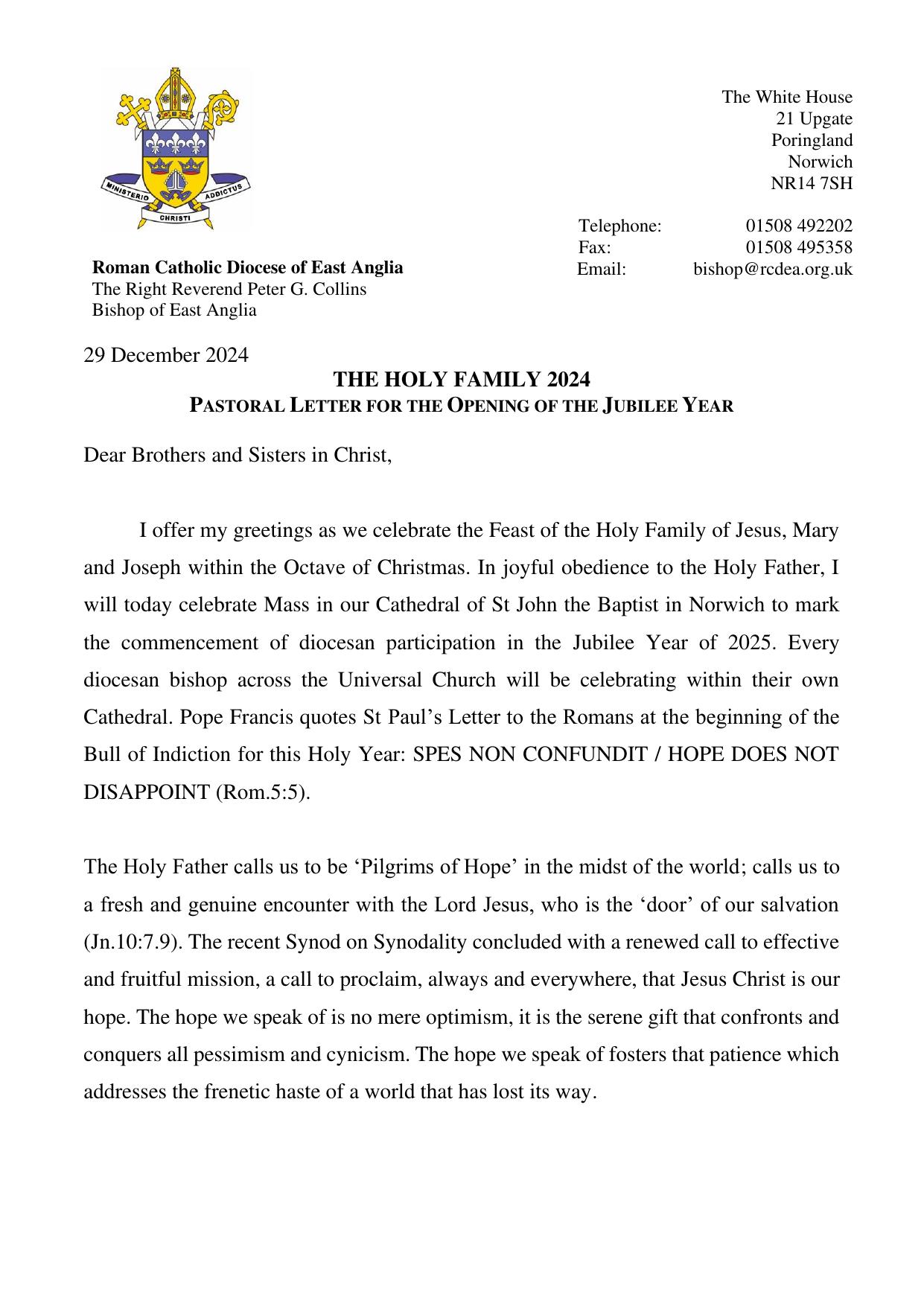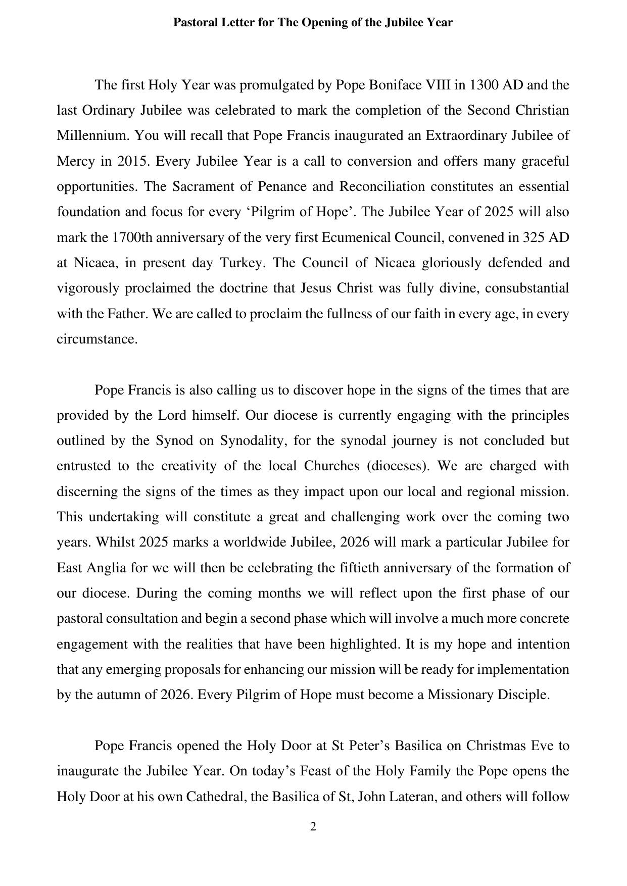 Jubilee Opening Pastoral Letter